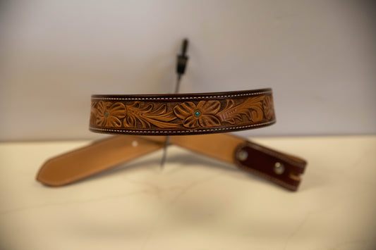 Women's Fully Tooled Floral Belt - Handmade - 30"